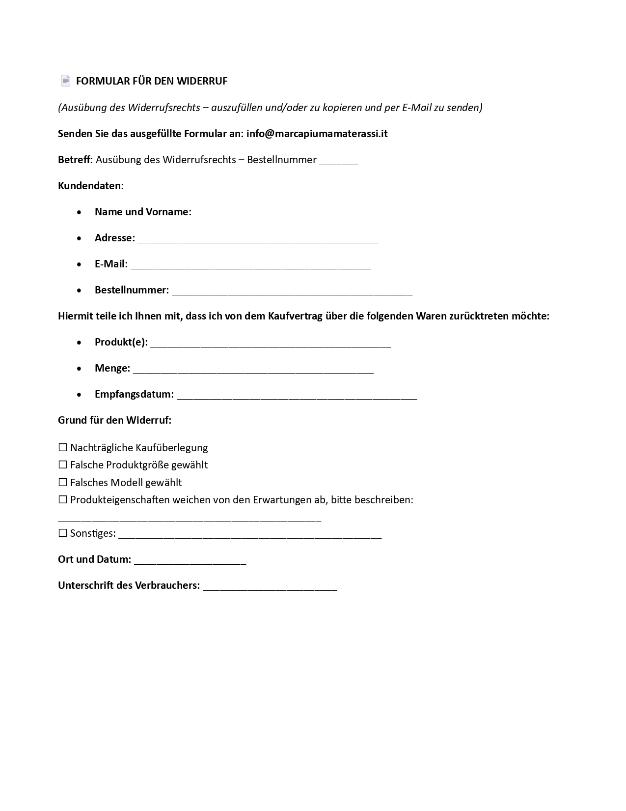 📄 FORMULAR FÜR DEN WIDERRUF