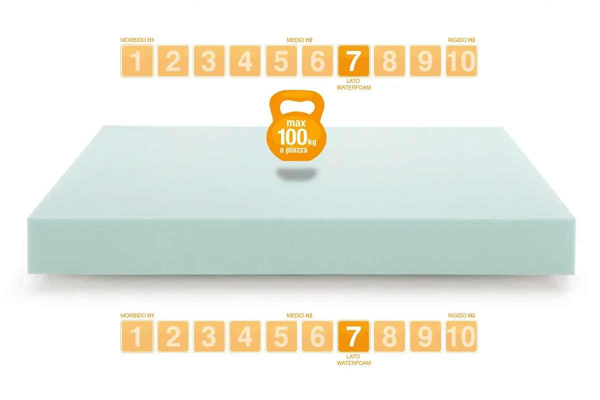 Der Matratzenkern besteht aus einer einzigen Schicht hochresilientem Kaltschaum, einem formstabilen Material, das auch bei häufiger Nutzung dauerhaft seine Form behält. Dies gewährleistet einen Härtegrad H2 MITTEL, ideal zur optimalen Unterstützung des Körpergewichts und zur Anpassung an die natürliche Krümmung der Wirbelsäule ohne Druckstellen zu verursachen.