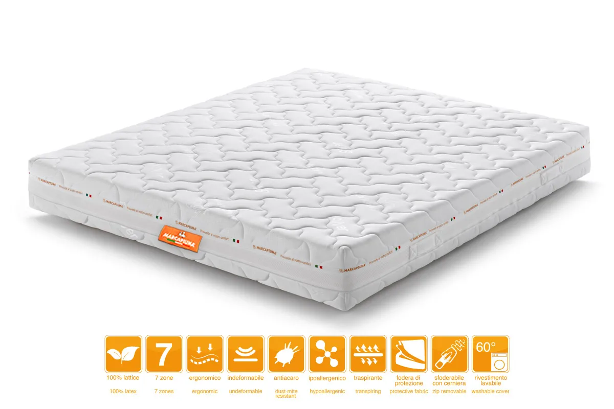 All Marcapiuma latex mattresses have antibacterial protection against the formation of mites and bad odors.