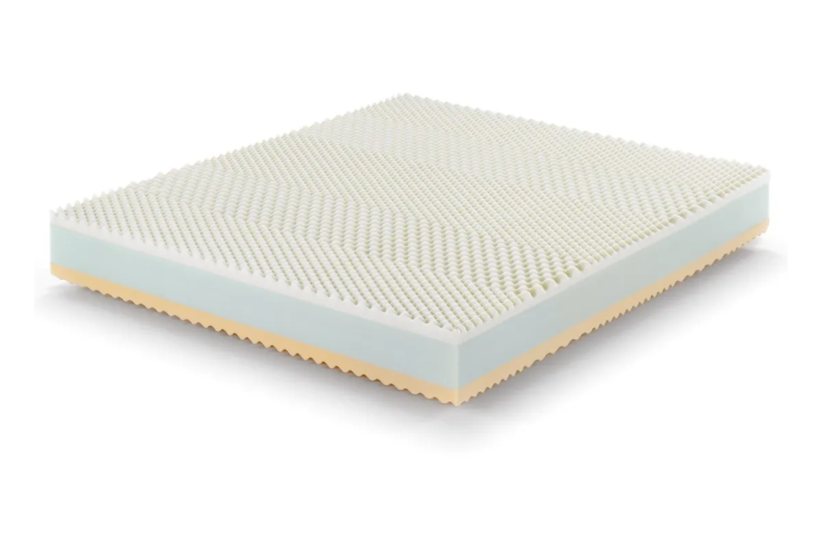 The first white layer, up to 4 cm high, is made of Memory Foam, a slow-memory, thermosensitive and self-modelling viscoelastic foam. The structure is superficially shaped with special soft and delicate cone processing. It is a relaxing memory mattress that gives a very pleasant and innovative enveloping sensation. The massaging effect of this mattress is unique, it gently accompanies the first phase of rest allowing you to fall asleep quickly. Ideal for true RELAXATION.