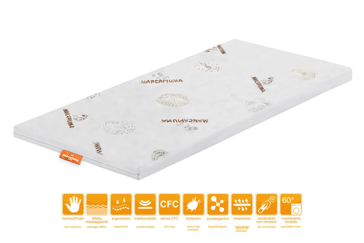 All Marcapiuma memory toppers have antibacterial protection against the formation of mites and bad odors.