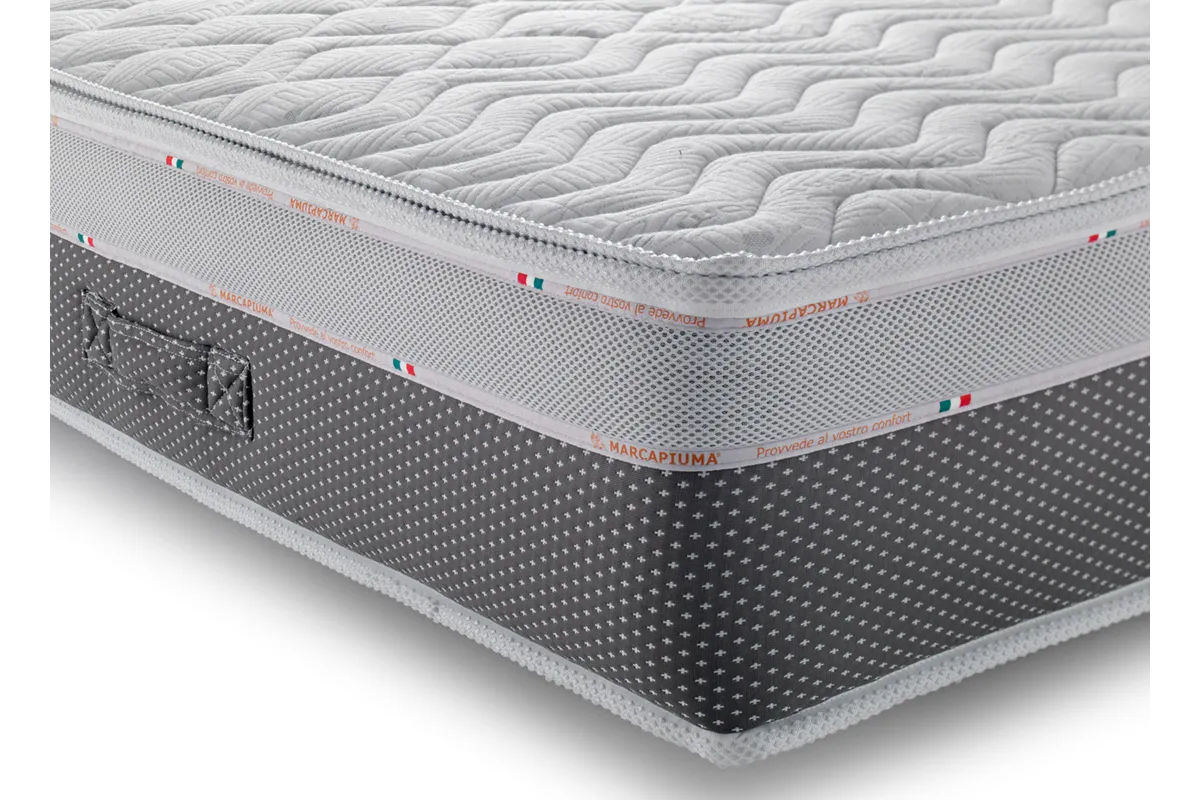 La banda perimetral 3D AIR PLUS, presente alrededor de todo el colchón, favorece la circulación constante del aire y la eliminación efectiva de la humedad corporal, ayudando a mantener el colchón seco y siempre confortable. Gracias a los tratamientos antiácaros, hipoalergénicos y antibacterianos, la funda protege contra alérgenos, bacterias y malos olores, creando un entorno de descanso limpio, sano y seguro.