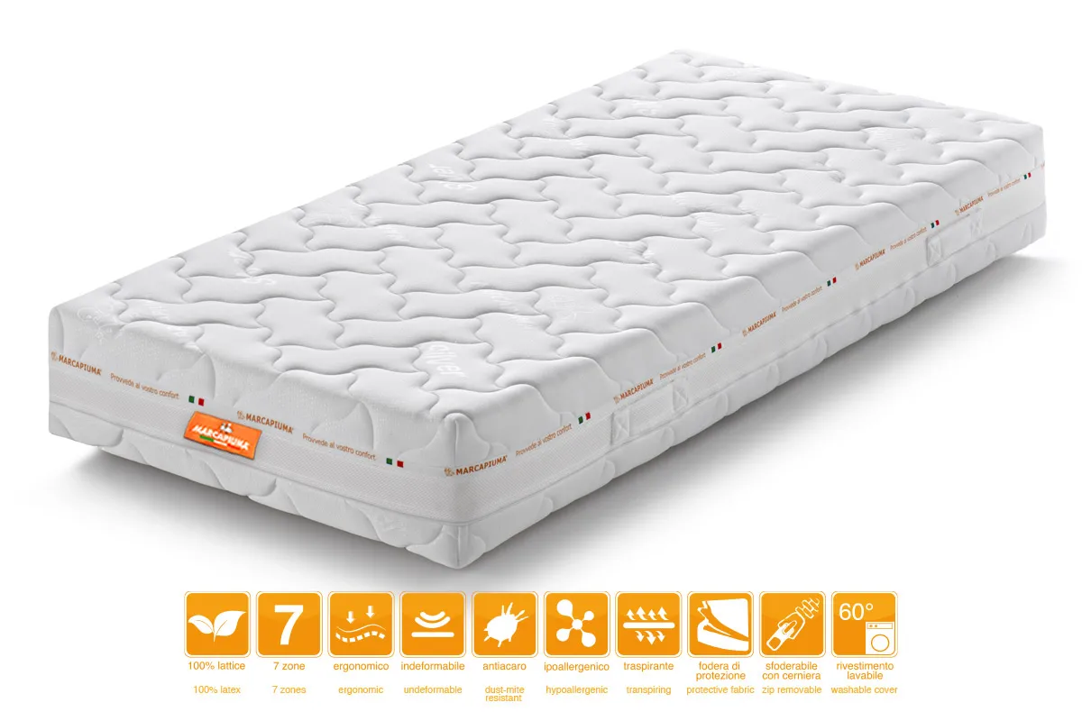 Todos los colchones de látex Marcapiuma cuentan con protección antibacteriana contra la formación de ácaros y malos olores.