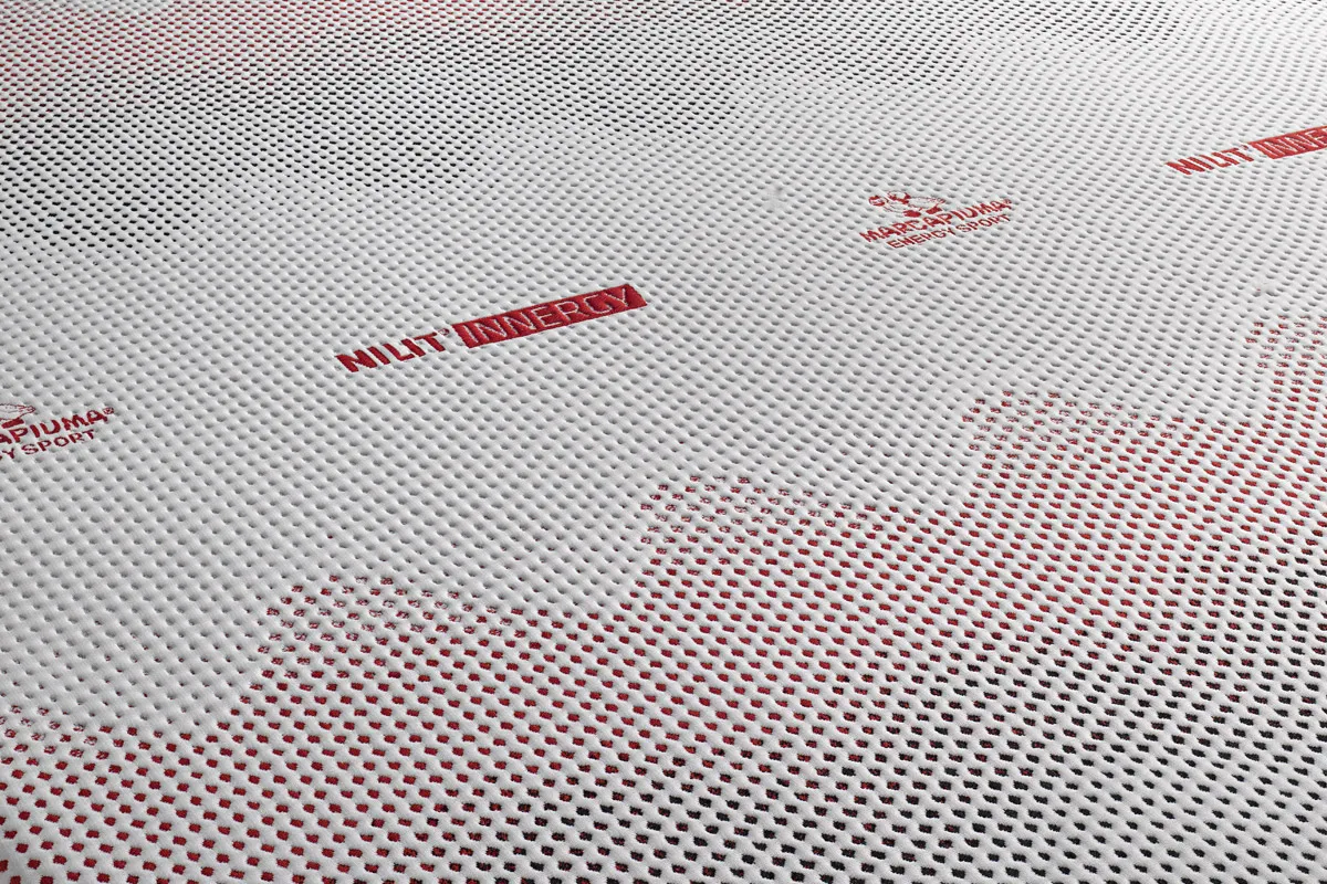 Revestimiento NILIT INNERGY® equipado con fibra SENSIL® Innergy. Es un tejido con un aditivo mineral natural integrado que convierte la energía térmica del cuerpo humano en rayos infrarrojos lejanos (FIR), la refleja de nuevo en los tejidos de la piel, lo que le permite energizar suavemente las células y mejorar la apariencia de la piel. Esta acción enérgica, profunda y delicada tonifica el cuerpo, optimiza la elasticidad muscular y el rendimiento deportivo.