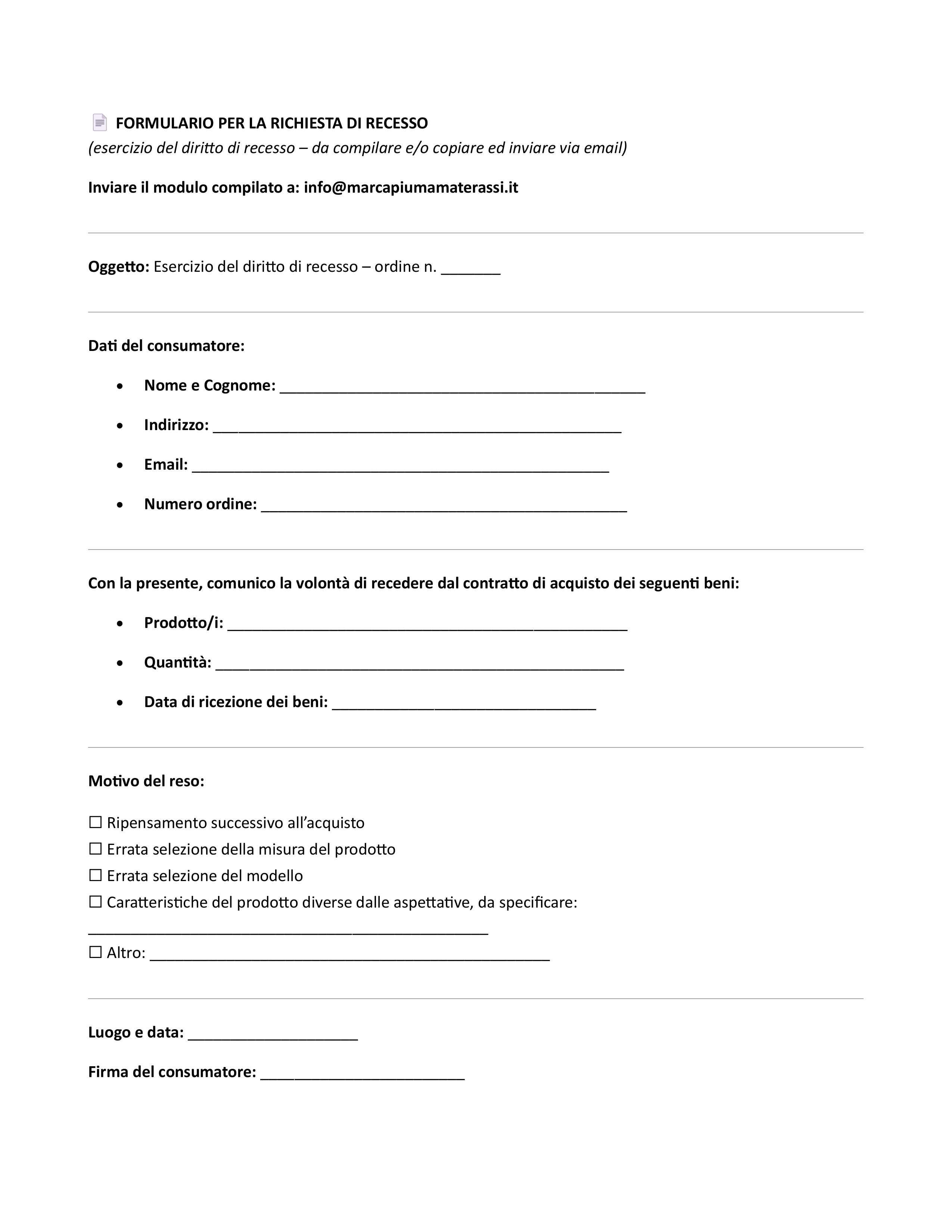 📄 FORMULARIO PER LA RICHIESTA DI RECESSO