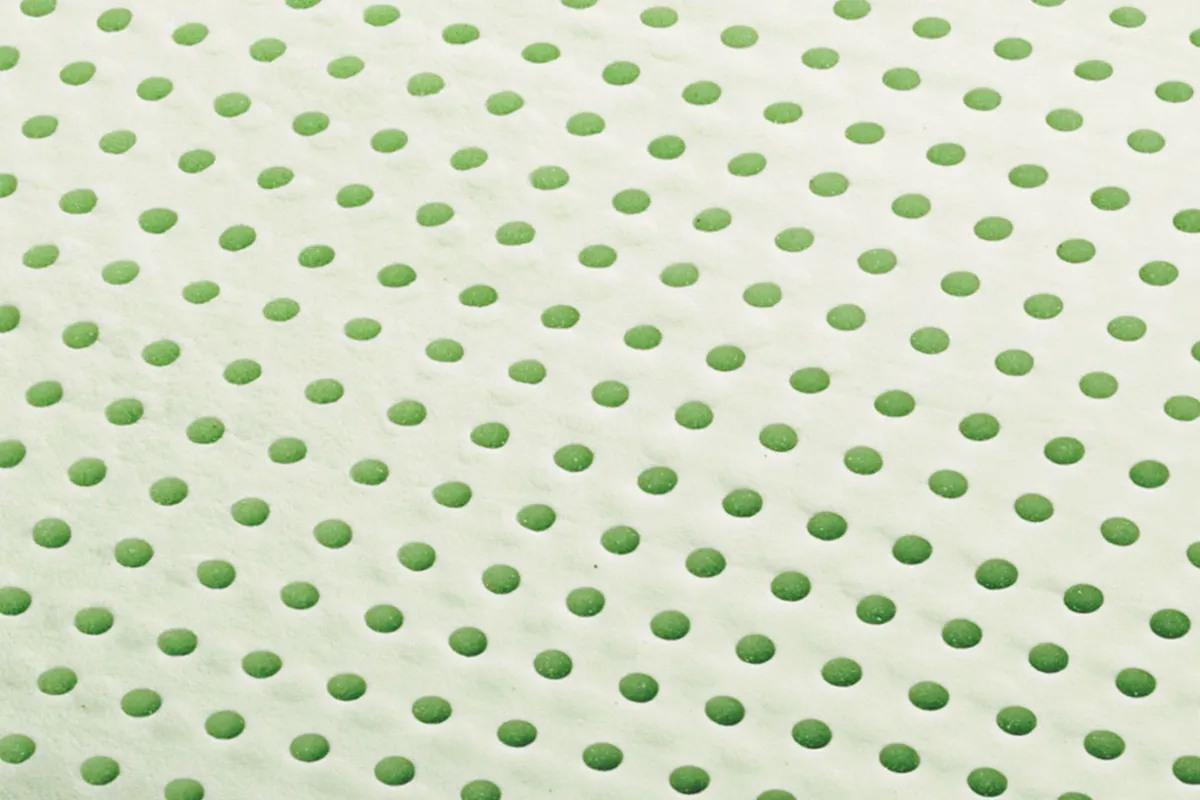 E’ composto da una speciale schiuma viscoelastica arricchita con Aloe Vera e oli essenziali di origine biologica ad elevata densità, termosensibile ed automodellante. L’intero guanciale presenta una microforatura uniforme con innumerevoli canale di traspirazione che favoriscono la microcircolazione dell’aria e donano una costante sensazione di freschezza.