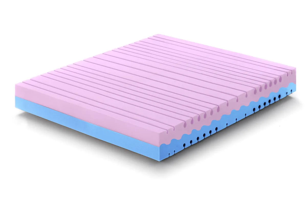 Materasso ortopedico in WaterFoam con grado di rigidità H3 RIGIDO, con 7 zone a portanza differenziata, composto da 2 strati.