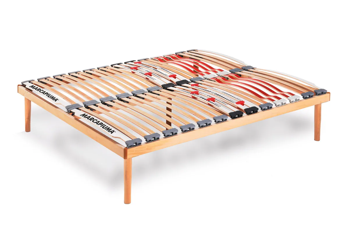 Il piano di riposo robusto ed indistruttibile si caratterizza da n. 26 doghe a portanza differenziata (n. 52 doghe nella versione matrimoniale). In corrispondenza della zona lombare e del bacino troviamo 4 doghe con regolatori di rigidità per una maggiore portata laddove il corpo esercita più peso. Le doghe sono in legno Naturale di faggio ad elevata resistenza, listelli curvati e con sezione 36 mm x 8 mm.