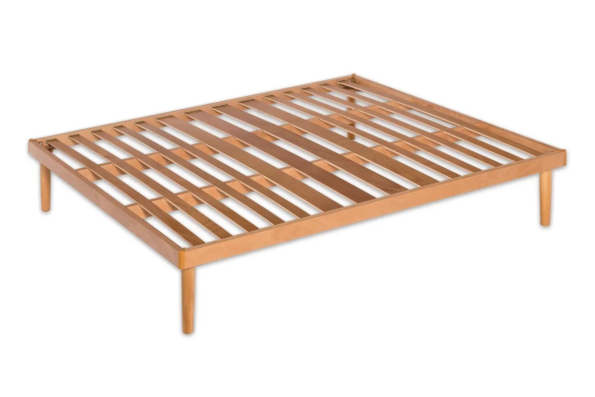 - Doghe a portanza differenziata: 14 doghe in legno incassate nel telaio, con 4 più larghe nella zona lombare per un supporto ortopedico mirato. Misure matrimoniali rinforzate con doppia traversa centrale.